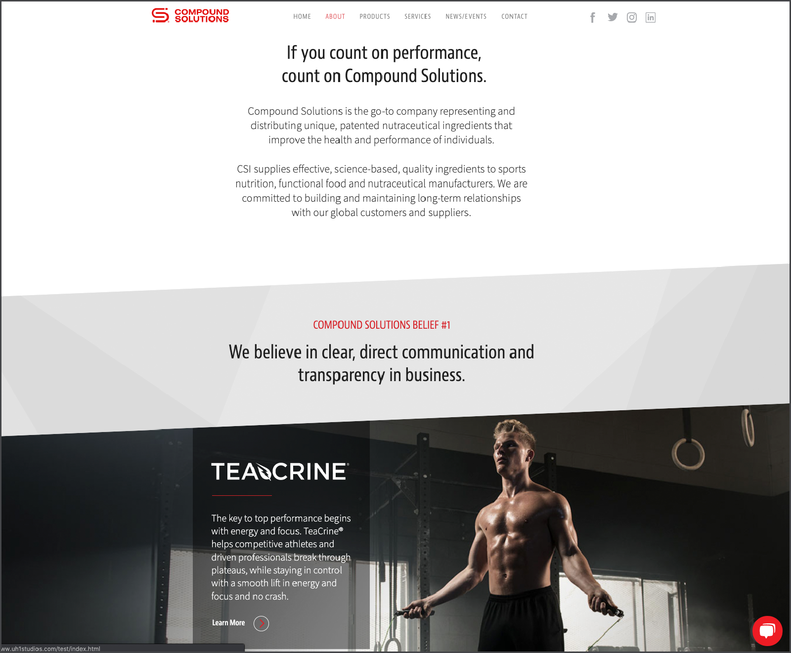Compound Solutions is a long-standing client we’ve been servicing for 20 years. In that time, UH1 has been integral in growing and evolving the brands and many sub-brands as part of the organization. The range of work includes packaging, print, video, web and UI design, social media, and even event experiences.