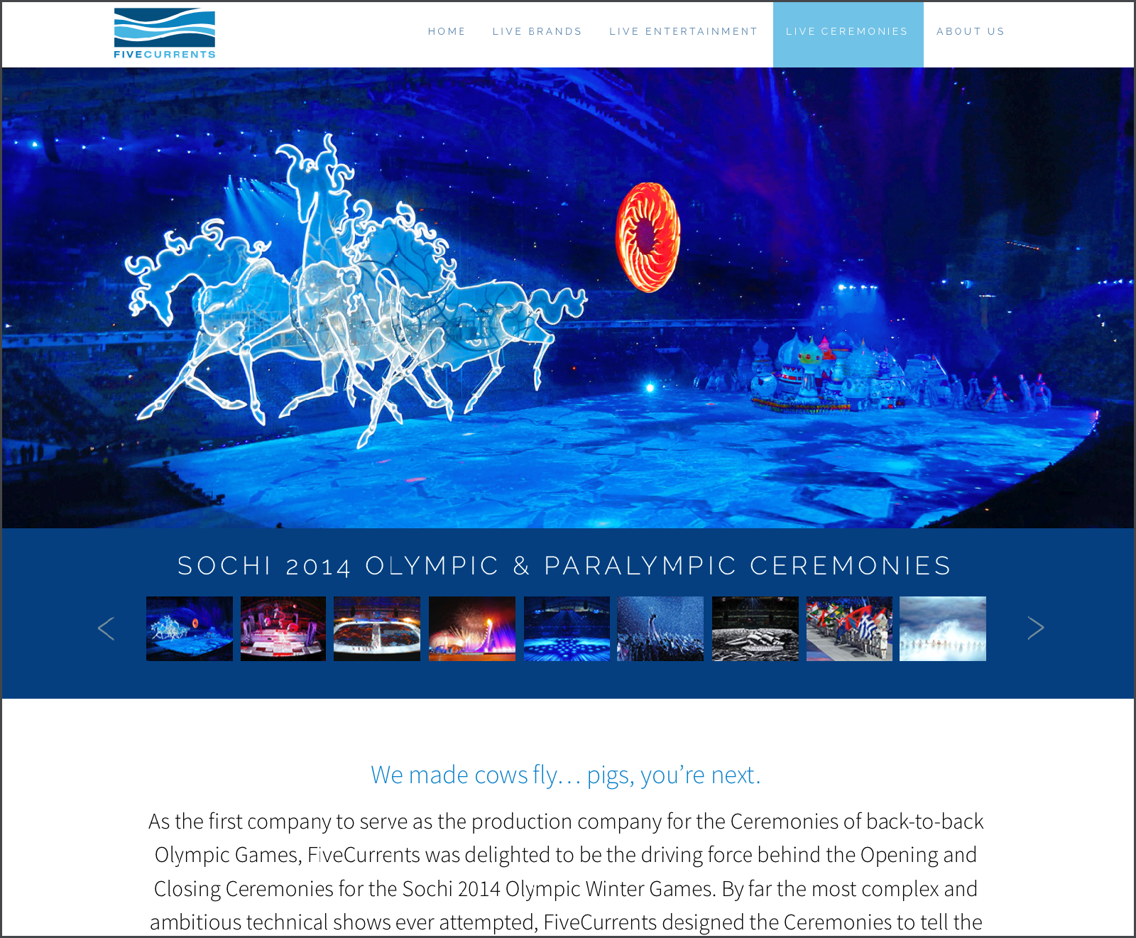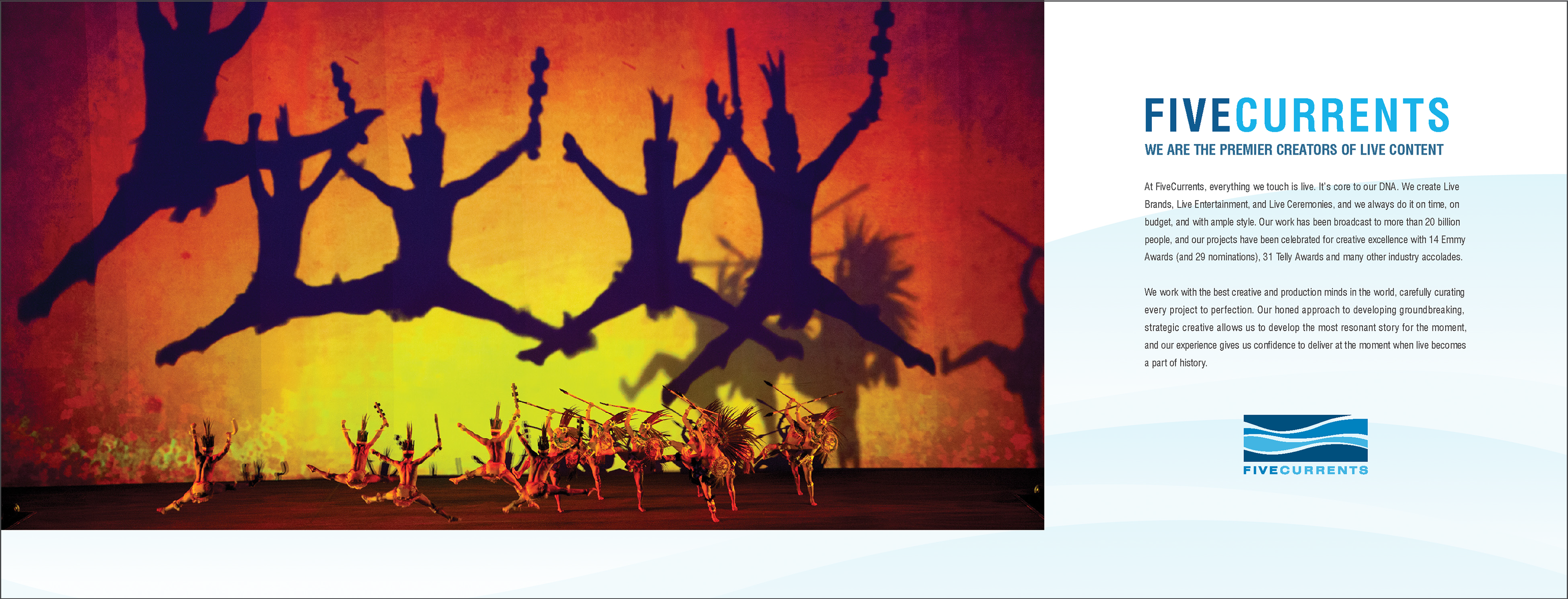 UH1 was charged with creating the brand for the internationally renowned event production company FiveCurrents. The project included logo, print, web design, collateral and all other marketing materials to showcase their world-class events. We’ve also helped with the concept development for many of their shows.