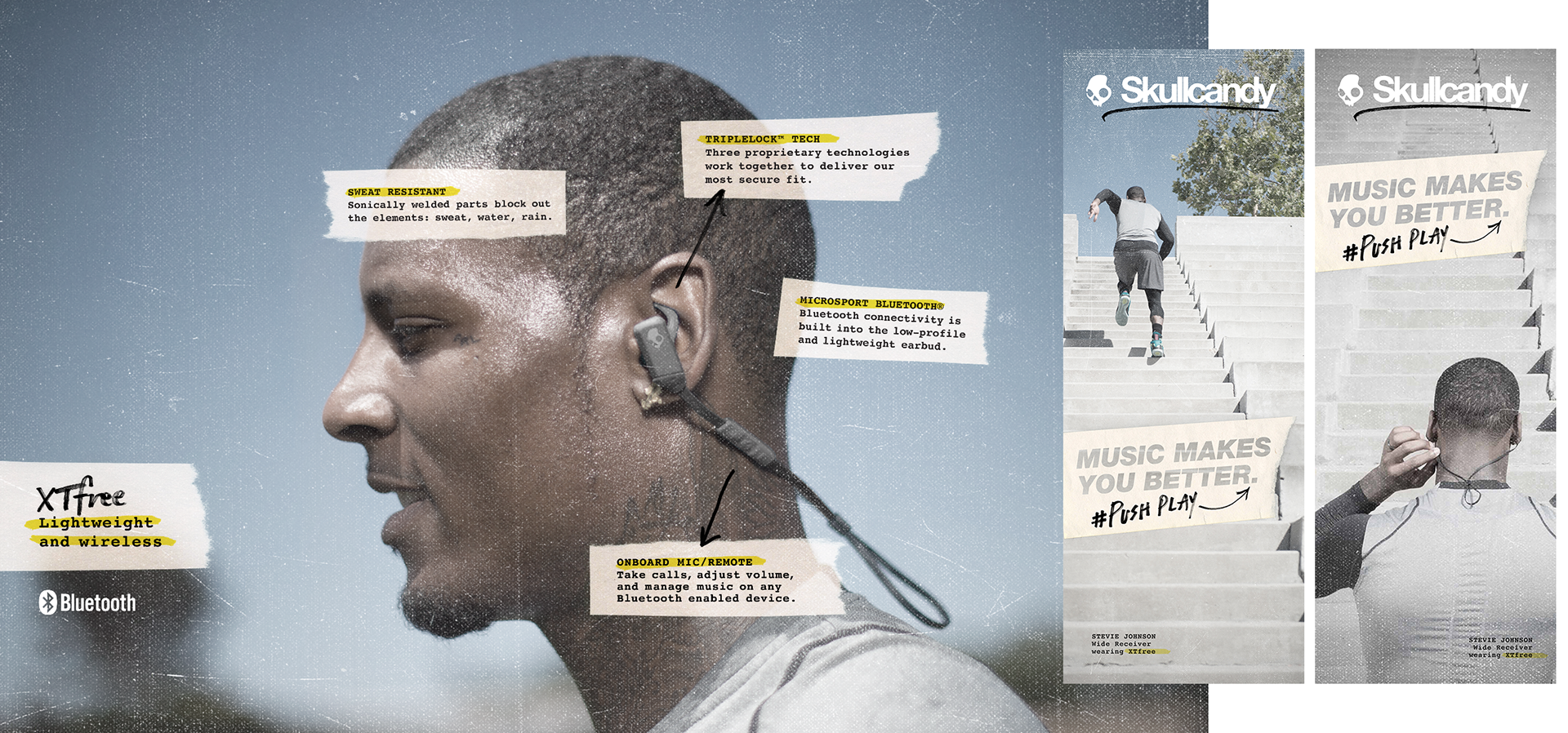 We helped bring the brand to life with a focused set of digital and print assets plus an on-site stage activation that felt true to its attitude. Even with a streamlined toolkit, every element was designed to feel connected, energetic, and unmistakably Skullcandy.