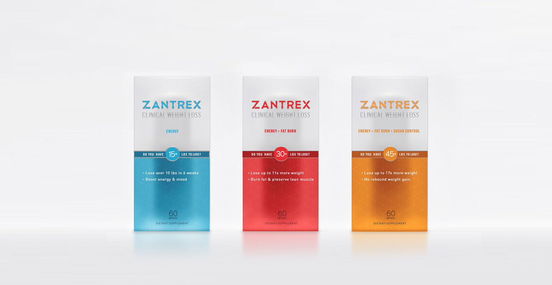 We updated the brand logo and packaging design for Zantrex, a clinical weight-loss product. The goal was to elevate the look and feel of the brand to a premium level, and increase the credibility and clarity of the product benefits.